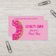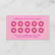 Donut pastry bakery loyalty punch card template. Custom company reward card design for doughnut store and more. Customizable hot pink colors. Space for 10 stamps / punch holes. Offer return clients and customers a discount or free order. Two sided print with desserts.