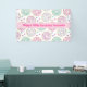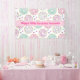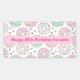 Birthday banner with a deliciously fun pattern. Illustration of pastel pink and green donuts with sprinkles and icing.