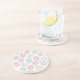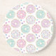 Sandstone coasters with a deliciously fun pattern. Illustration of pastel pink and green donuts with sprinkles and icing.