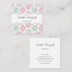 Business card with a deliciously fun pattern. Illustration of pastel pink and green donuts with sprinkles and icing.