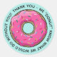 A pink donut with sprinkles overlaying teal sticker to thank a teacher and text that goes around the donut. "Thank you - we "donut" know what we would do without you!