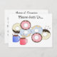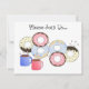 A fun invitation featuring a white background. Delicious variety of frosted donuts and two steaming cups of coffee... customize with all of your information as desired.