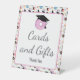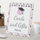 From classic frosted designs to colorful sprinkle-topped treats pattern. The playful pattern blends whimsy with a pink glazed donut wearing a graduation cap as the main image on the front of the sign.
