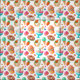 Cute and fun illustrated pattern featuring chocolate frosting donuts with sprinkles, mint chocolate chip ice cream cones, chocolate ice cream sundaes, neapolitan ice cream sundaes, strawberry cheesecakes, strawberries, blueberries, bright pink macarons with yellow filling, and tiny hearts in this pattern. A whimsical design for any material.
