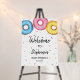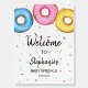 This customizable baby sprinkle welcome banner features watercolor pink, blue, and yellow donuts, stylish typography, and colorful sprinkles.