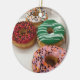Lightweight, smooth, pure white ornament with nice sheen. Perfect size to be seen from across the room ... and to attract closer inspection! Price was great for ordering enough for the whole family! Clear, bold black design just as requested. Matches the order exactly. Just so nice!