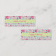 Skinny business cards to get your message out there. A yummy business website card with a delicious pattern design. Glazed pink donuts with sprinkles. Mouth watering cupcakes in pink and blue with rosettes and strawberries on top. Some pastel pink french pastry macarons and little pink candy buttons also decorate this pattern full of sweet treats. Set on a pale pastel background. A yellow stripe with a green border stretches across the center where you can enter your text with easy legible writing.