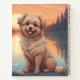 Cute Doodle Dog sitting by a lake at sunset. Puzzles, planners, notebooks ornaments tiles phone cases more.with this design in my stores. Add this image to other products. Add your own text too. Change background color. Lots of pets in my store.