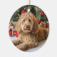 This Christmas ornament features a holiday portrait of a Doodle resting beneath the Christmas tree, surrounded by softly glowing lights and wrapped gifts. With its curly coat, soulful eyes, and calm, loving expression, the scene captures the Doodle’s comforting presence and the quiet joy it brings to the holiday season.