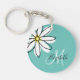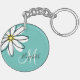 Doodle Drawn Daisy White Pink Monogram Cute Keychain