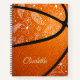 This cute basketball themed spiral notebook features the realistic image of an abstractly oversized basketball that has delicate hand-drawn doodle flowers, feathers and paisleys patterned on the basketball's panels - customize with the athlete's name - by katz_d_zynes