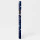 Doodle floral pattern with spindle blue and cold turkey colored flowers and snuff purple and blue compound leaves. Set on a very dark blue background with a matching blue stripe where you can personalize with your name or initials in matching sans font lettering.