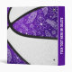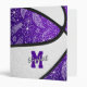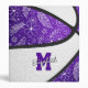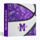 This cute basketball themed 3 ring binder features the realistic image of an abstractly oversized basketball that has recolored alternating purple and white panels with delicate hand-drawn doodle flowers, feathers and paislies patterned on the basketball's purple panels mirrored on the front & back cover - customize with the athlete's name and monogram, varsity letter, or jersey number - by katz_d_zynes