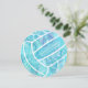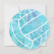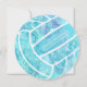 This cute volleyball themed round party invitation has a turquoise color theme with blue & teal accents and features the outline image of a simple volleyball - a delicate doodle pattern of paislies, flowers and feathers in white covers all but one of the volleyball's textured-look panels - personalize with her celebration details - by katz_d_zynes