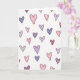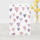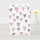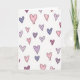 Soft colors and a scatter of sketched hearts fill the front of the card on a plain white background. The hearts come in blush pink, light purple, pale blue, and a deeper plum, each outlined with a dark gray line. Many of them have light shading lines inside, like quick crayon marks, which makes them feel warm and casual. The hearts are different sizes and angles, so the layout feels loose and natural rather than perfectly even. There are no characters or objects besides the hearts, and the simple setting keeps the focus on love and friendship. There isn’t any text printed on the card, so the heart pattern does all the talking 💘❤️. It’s an easy pick for someone you care about, whether it’s a partner, friend, or family member 😘.