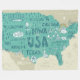 Handdrawn illustration of USA map with hand lettering names of states and tourist attractions. | © and ® Bigstock® - All Rights Reserved.