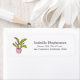 A cute return address label with a hand-drawn, doodle style illustration of a green plant in a pink pot to the left of the label. Easily customize with your name and address.