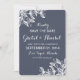 The matter paper is our sample of choice -- it's a reasonably priced, good quality, nice feeling paper stock. We were a little concerned the muted rustic blues might not reproduce all that well (usually by light colored samples), but they're just gorgeous! The white lettering is perfect in combination with the blue background, and the typography is all easy to read.