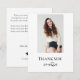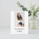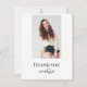 Personalize this modern graduation thank you card front and back with your own text and pics. Features a minimalist design of a photo on the front with dark gray text and heart doodle grad accent. Ample space on the back to further personalize with your own message and name with accented with a black grad cap. Photo credit: adapted images from Pexels.com by Maryia Plashchynskay