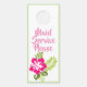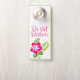 This door hanger is double sided with a pink hibiscus and green ferns over a white background. Text on front reads "do not disturb", backside reads" maid service please". Both front and back are bordered with a lovely shade of light green to coordinate with the flowers. Customize this item to your liking with what ever background or trim color or phrase you wish, or buy as designed.