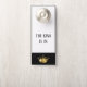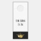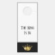 This door hanger is double sided and crowned with a gold king's crown at the bottom. Upper edges surrounded by a silver-gray border with sample text of "The King Is In". Customize this item to your liking with what ever color or phrase you wish, or buy as designed.