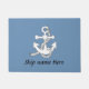 Anchor in white on blue background. Personalize the caption (in black) at bottom with Ship's name, Customize/Edit background to change color to your choice. ***Part of coordinated set - BKM1d.
