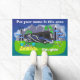 This doormat can be customized to show your name on top. When used outside of your RV, people will know who they are talking to when they see you. Non-slip rubber that won't crack or buckle, this mat resists fading, mold, and mildew and can be easily cleaned with a hose. This version has a blue Class A RV similar to an Entegra Aspire. It can be used indoors or out and makes a great welcome mat for your campsite, wherever you may go.