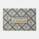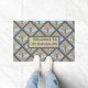 Welcome to my Bungalow! This attractive doormat is designed for a Craftsman Bungalow. The design is made with Moth tiles inspired by a classic Arts and Crafts Stained Glass design. The colors are ocher, white and blue. The tiles are laid diagonally with a blue trellis effect. You can compose your own message. Are you serious or funny? It's your turn to be creative.