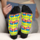 This fun Halloween socks are bright and colorful. The small print is crisp and shows the fun details. The softness of the socks feels nice on my feet and ankles. .