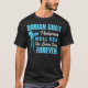 My 11 yo wore adult XL (5’7” 165#). The 8yo is small framed. She wore adult small and tied it in the back. Grandma wore adult large with long sleeve shirt underneath. Tall girl adult medium. Dark haired male adult large. Good quality dark Heather gray, Gildan brand shirt. -it was next up from basic choice and cost about $20 per shirt. Not too thick or thin. Washed and dried well, no major shrinkage. Not see-through. Can wear a bra under it fine. Screen print is just as shown and well done, front and back.