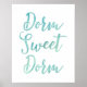 Give your dorm a little sparkle with this custom made Dorm Sweet Dorm poster. The letters are a combination of mint green and blue glitter print. This design will make your space shine during the semester. This is an original design created by an independent artist.