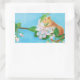 Dormouse and apple blossoms illustration rectangular sticker