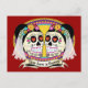 Two happy sugar skull brides with a banner beneath that says "True Love is Forever". You can change the background color and add text to personalize this postcard. This postcard works great for a "Save the Date" card!