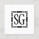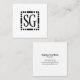 A square business card template with initials placed inside a square box with a decorative frame. In this version the initials are in the Integrity bold font. Name and profession/job title along with telephone, email and website address in black on the reverse side on a white background, using variations of the Matt Antique font.