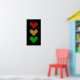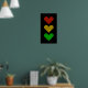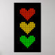 A Stoplight drawn with heart-shaped “lights”, made entirely out of Dots.
