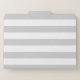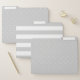 This stylish set of file folders features two gray folders with white polka dots, and one with gray and white stripes.