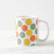 This mug has a geometric design of dots in coral, gold, and sage green.