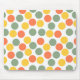 This mouse pad has a geometric design of dots in coral, gold, and sage green.