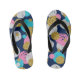 The flip flops arrived in a most colorful package which also had them double bagged in a black drawstring pouch which makes them great for gifting. They are a quality product with plenty of durability. The printing is vivid and true to that pictured on the web. Great look!