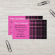 Stylish, modern looking business card with a polka dot pattern of black and pink. This comes in several colors. This has many uses as a modern looking business card. High tech companies, computer consultants, networking consultants, any high tech modern business looking for and edgy fresh design.