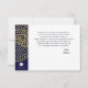 This handsome design makes a wonderful "thank you" for any occasion. The white background has a wide, deep-blue band and dotted circles in various muted colors. Makes a great invitation too! The card is easy to customize with your wording, font, font color and choice of six paper types.