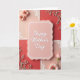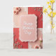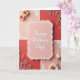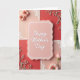 Designed with a softly rounded pastel pink frame, the card centers the eye on a gentle message set in flowing white lettering, surrounded by a white dotted border and a thin inner outline ❤️. Subtle shading beneath the frame adds depth, as if the message is resting slightly above the surface. Behind it, muted coral and deeper rose panels form an uneven grid, giving the background a cozy, layered look. In the upper left corner, two peach-toned blossoms with dark, detailed centers seem to drift lightly, their faint shadows suggesting closeness and quiet affection. Fine white curling ornamentation peeks from the panel seams like delicate lace, linking the sections together in a soft, romantic way. Slender silvery-white branches dotted with tiny bright buds stretch across the darker red areas, adding a gentle shimmer beside the matte textures 🌼. In the lower right, a small pink bud sits among fresh green leaves near the edge of the frame.