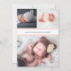 Announce your baby girl's arrival with our sweet double sided birth announcements featuring four favorite newborn photos and an elegant preppy color palette of smoky navy blue and vibrant coral. Front side showcases a single vertical orientation photo with baby girl's name and birth stats, framed by a subtle dotted pattern in navy and white with a coral border, while the back features three full-bleed photos -- two square and one landscape -- with your names or personal message.