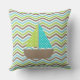 Dotted Sailboat on Chevron Stripe Outdoor Pillow