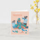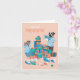 Send your loved ones this whimsical Dotty Dog, the dalmatian, and Kitty, the cat, opening a mountain of presents birthday card. Cute design in different shades of blue and orange. Text on card reads "Time for Presents!"