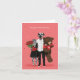 Dotty Dog, the dalmatian, with a giant 'I Love You' teddy, and Kitty, with chocolates and roses, celebrate their anniversary, on a pink background. Text reads - Happy Anniversary.