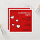 An original design of white hearts with red polka dots, and tiny red hearts, outlined in black and drawn on kraft paper with marker pens. Perfect for Valentine’s Day Party or dinner invitations and party favors.