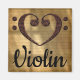 Share your love for the violin, a member of the string instrument family. Makes a great gift for any musician, music teacher, or music student. This double bass clef heart design is presented over an aged sheet music background. It can be deleted and replaced with a rainbow of light color choices. Easily customized by changing "Violin" to any other musical instrument or text.