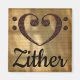 Share your love for the zither, a member of the string instrument family. Makes a great gift for any musician, music teacher, or music student. This double bass clef heart design is presented over an aged sheet music background. It can be deleted and replaced with a rainbow of light color choices. Easily customized by changing "Zither" to any other musical instrument or text.