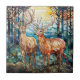 Double Buck Deer Forest Stained Glass Ceramic Tile